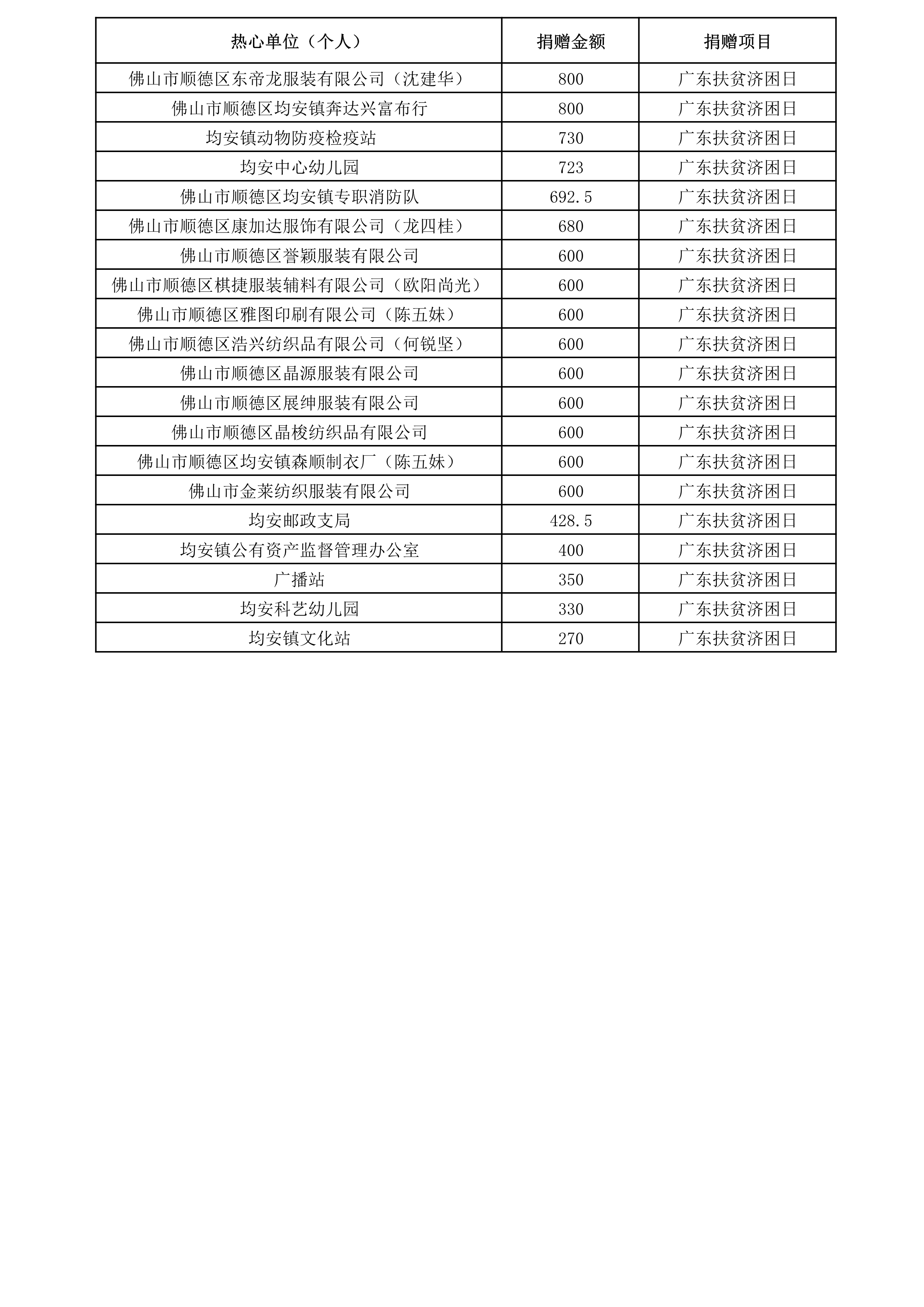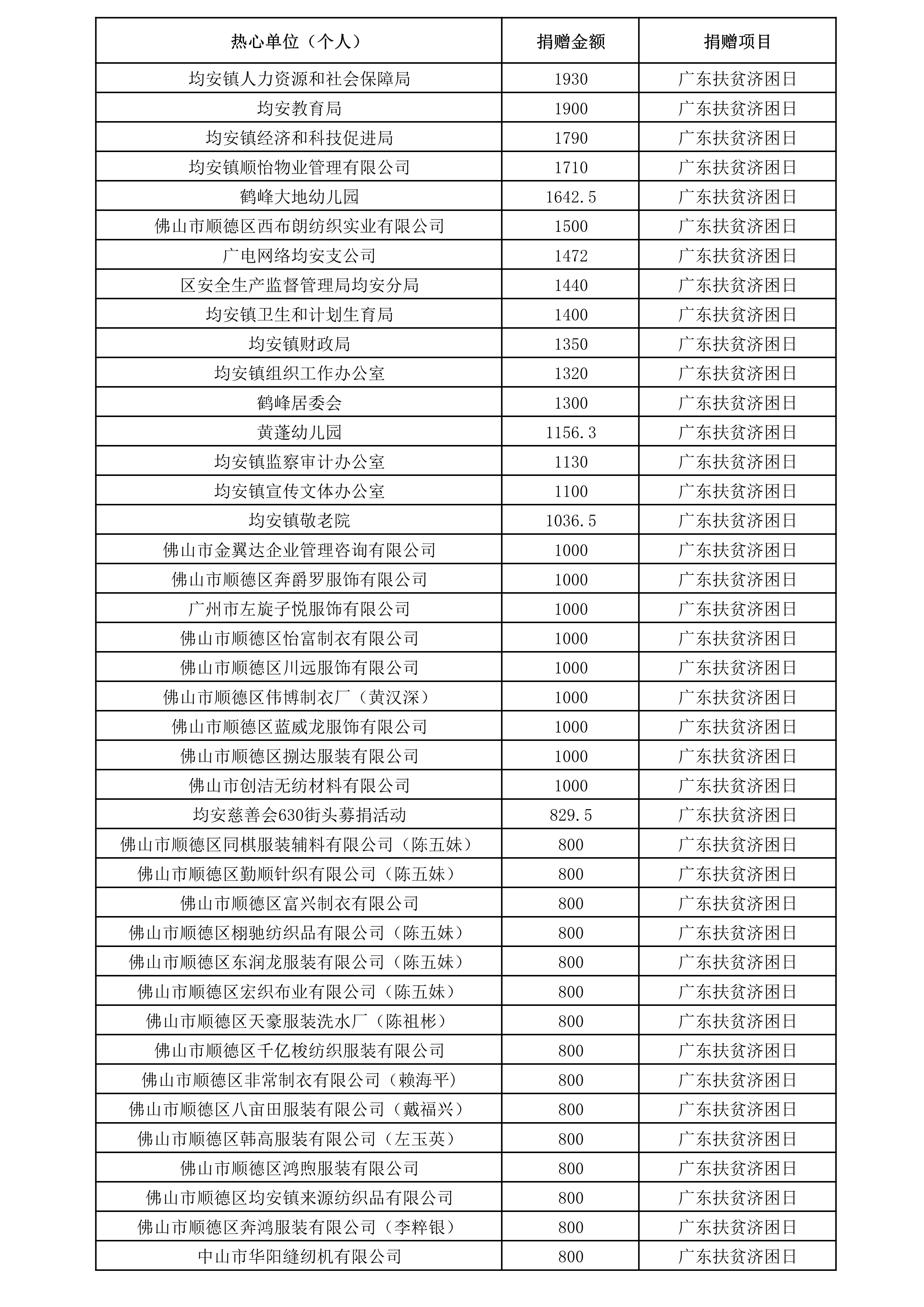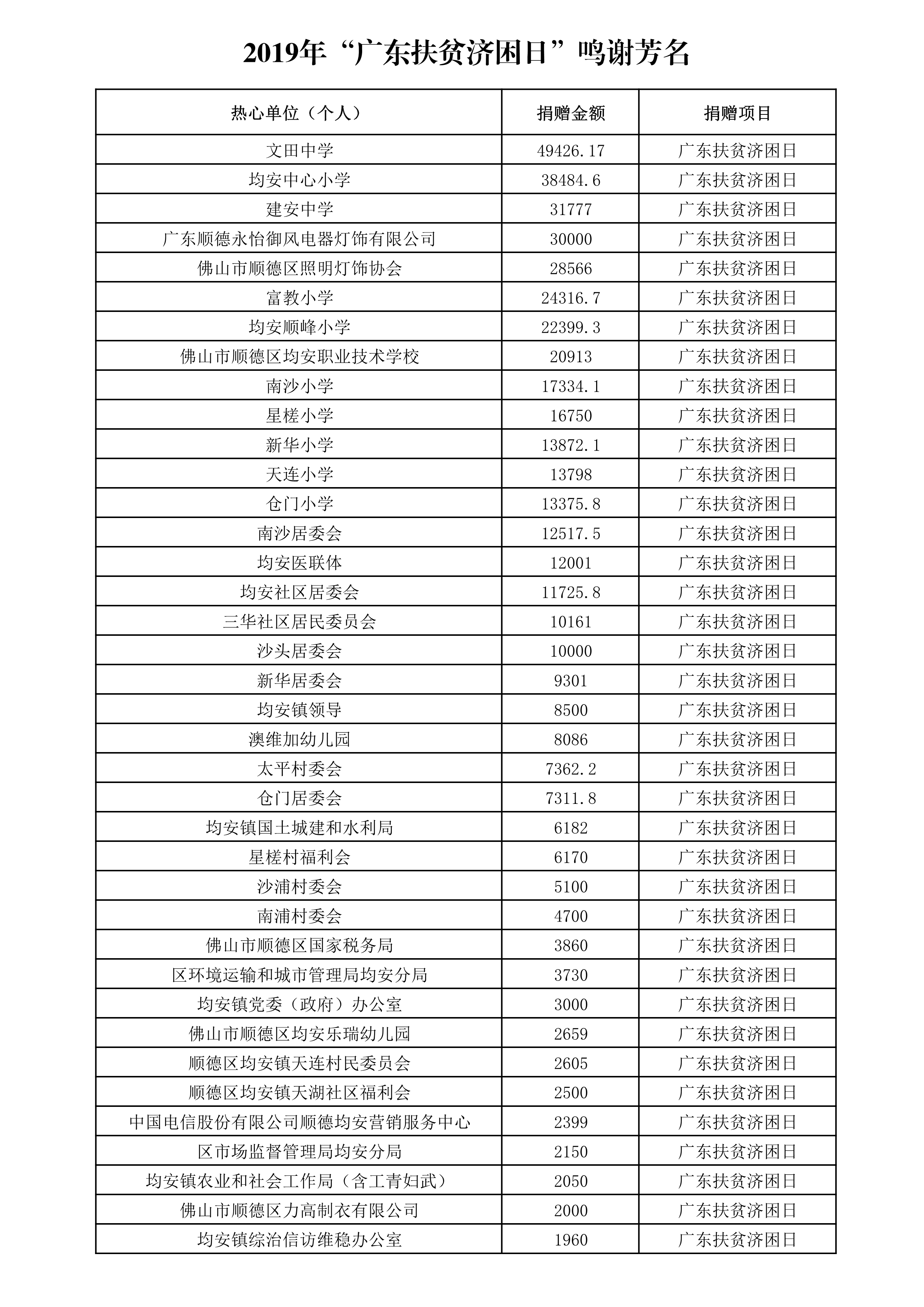 2019年“广东扶贫济困日”捐赠芳名
